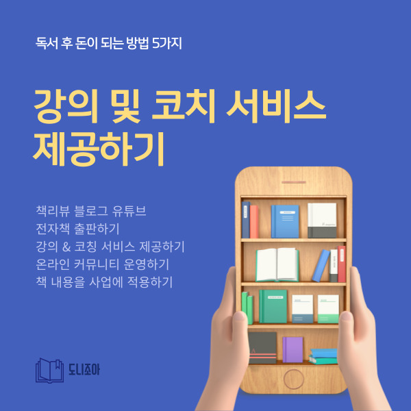 책을 읽고 얻은 지식을 활용해 강의와 코칭 서비스를 제공할 수도 있습니다. 예를 들어, 경제, 투자, 자기계발, 심리학 관련 책을 깊이 있게 공부한 후 이를 기반으로 유료 강의를 열 수 있습니다.