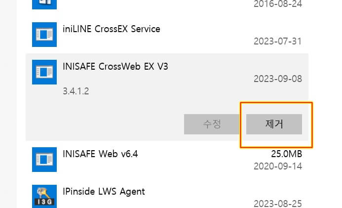 삭제하고 싶은 프로그램을 선택하면 수정,제거가 생기는데, 제거를 눌러서 삭제합니다.